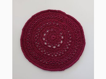 Rund virkad matta till dockskåp, ca 12 cm, bomull, dockskåpsmatta