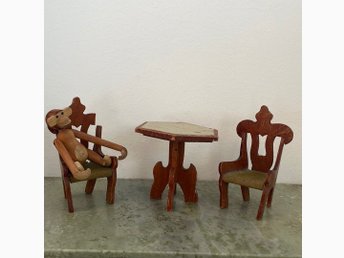 Miniatyr Möbler 2 Stolar & Bord Retro Vintage Inredning