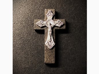 Miniatyr svartbrunt krusifix Jesus kors tittskåp dockskåp dockhus 1:12