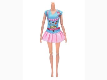 KLÄNNING + SKOR docka ingår ej blå rosa halband motiv*
