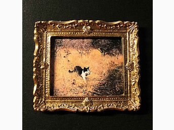 Miniatyr tavla: Katt & fågel - Bruno Liljefors - miniatyr dockskåp dockhus 1:12