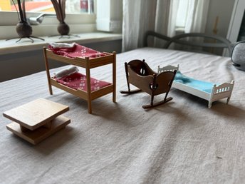 Lundby dockhusmöbler – sängar, vagga och bord – vintage