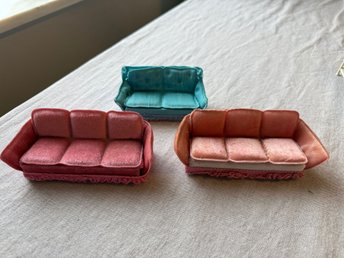 Miniatyrsoffor för dockhus, 3-pack dockskåpssoffor i tyg Lundby vintage