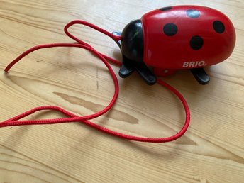 Brio dragleksak nyckelpiga röd svart slutsåld trä gå leksak