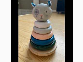 Micki Stapelleksak trä Björn ringar blå grön grå