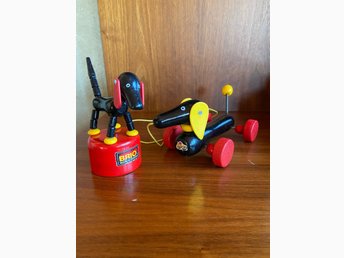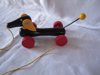 Brio Sampo hund på röd platta, "Made in Sweden"