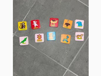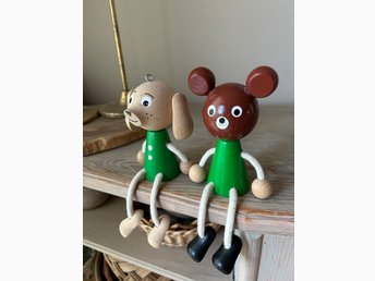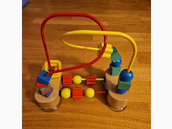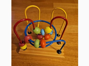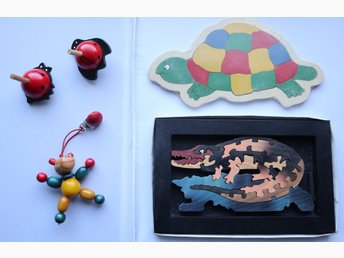 5 st. Träleksaker - nyckelring, snurrleksaker,pussel..