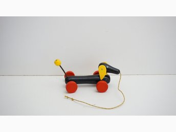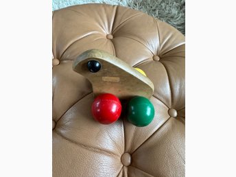 Retro trälleksak i BRIO-stil – färgglada kulhjul, svensk design 1950/60-tal