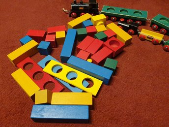 Brio tåg och byggklossar i trä