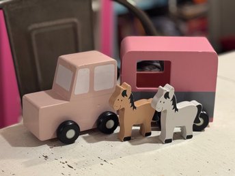 Jabadabado bil med hästtrailer och 2 hästar, träleksak