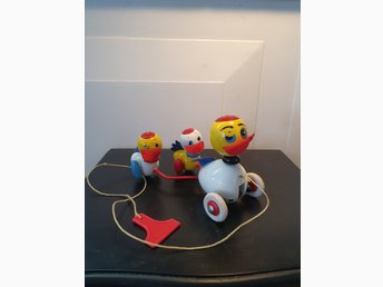 Retro Vintage BRIO Leksak Ankmamma med två Ankungar på hjul