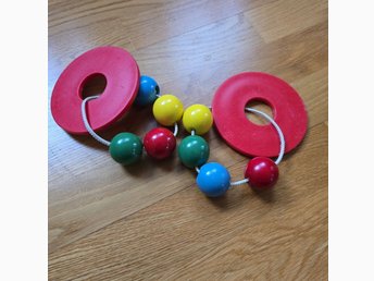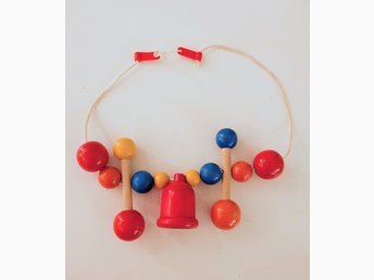 Träleksak från 70-talet / mobil leksak trä färgglad barnvagnsmobil