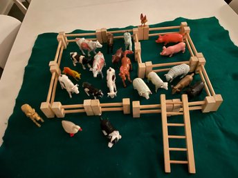 Bondgårdsdjur och staket i trä