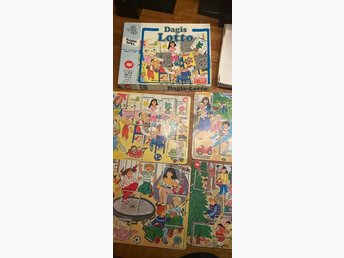 Fint träpussel med 4 olika pussel med tema