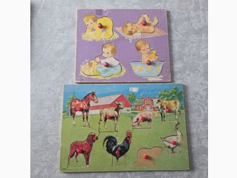 Två Retro Djur Trä-Pussel 70-tal
