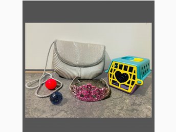 Leksakspaket: Djurtransportbur, handväska, tiara , studsbollar