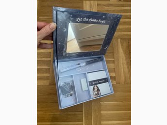 Ny blå silverglittrig ask för pennor och anteckningsblock spegel pennskrin