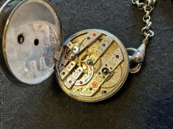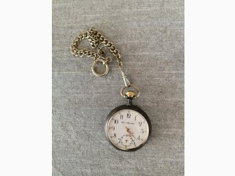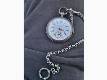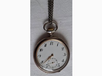 Viking Fickur med Kedja, 0.800 Silver Fungerar. Antikt fickur.