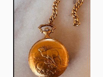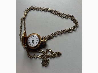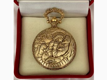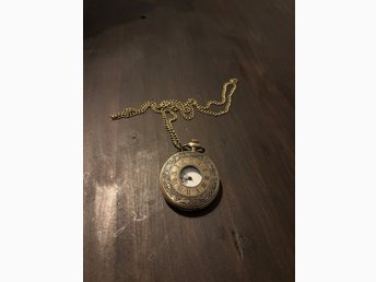 Vintage guldfärgat fickur dekorativ gravyr MKT FINT SKICK urverk Quartz
