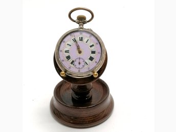 Antikt stort schweizisk 800 Silverfodrat Järnvägsfickur Rosa Emalj, Tåg