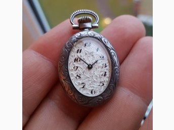 Fickur med graverat mönster, Remontoir Cylindre 10 rubis. Silver