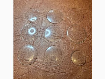 9 st klockglas till fickur – platta & dome (glas & akryl)