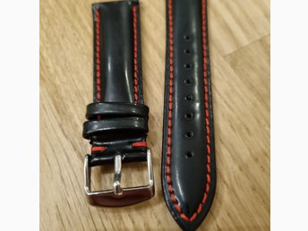 22mm svart röd söm, Läderarmband 22mm