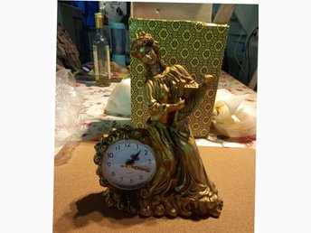 Brand New Guldplatered bords klockal figur kvinna med harpa