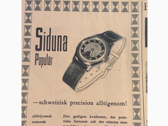 Retro-annons ”Siduna populär - Schweizisk precision” från 1951