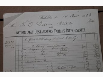 Faktura Gustafsbergs Fabriks Interessenter 14 december 1883 Gustavsberg Raritet