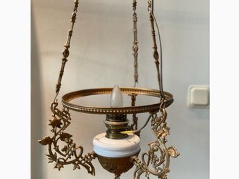 Äldre takfotogen lampa, Majolika