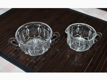 Gräddsnipa och sockerskål i glas retro vintage 50-tal 60-tal