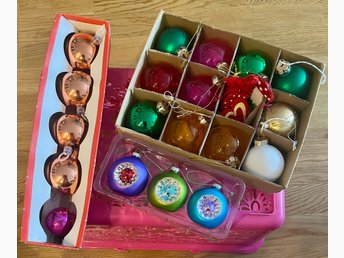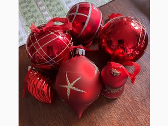 21 st julgranskulor (3 små) + annat (tomte hjärta flugsvampar) mest retro