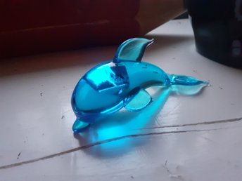 Blå delfin i glas - Glasdelfin