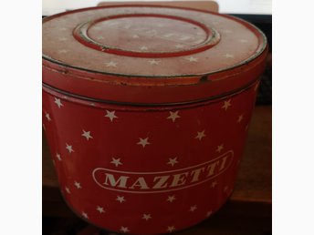 Mazetti Burk Kakburk med patina 60-tal 50-tal ? vintage + Burk vanillinsocker