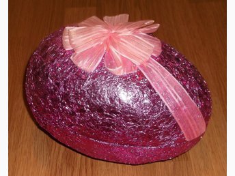 STORT Påskägg i papper Rosa metallfolie och rosa rosett 1970-tal Vintage