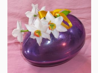 Påskägg lila plast med vita pingstliljor av plast 1960-tal Vintage