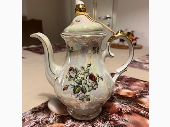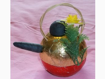 Påskägg kaffekanna röd gul metallfolie plastblomma 1950-tal Unik Vintage