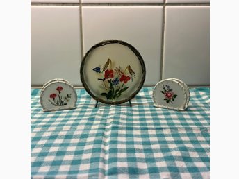Rörstrand 3st Tallrikar 24cm Lila Blomma Vit Guldkant Vintage Mattallrikar