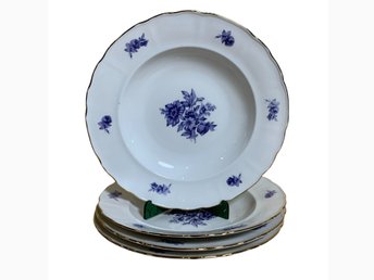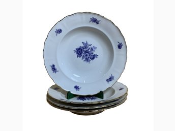 Rörstrand 4st Djupa Tallrikar 24cm Lila Blomma Vit Guldkant Vintage