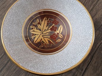 Rörstrand Fat 36,5cm Lila Blomma Vit Guldkant Uppläggningsfat Vintage