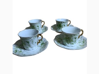 Koppar & Fat Grön Vit Vintage 4-delar Kopp Antika