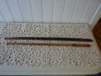 Alnmått, 2 stycken, 1810 & 1851, järn & trä, 1 aln äldre antika mått, tre kronor
