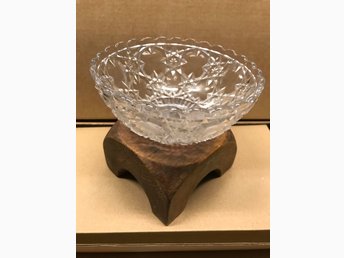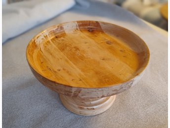 Antik Skål Pressglas Glas Träfot Sekelskiftet