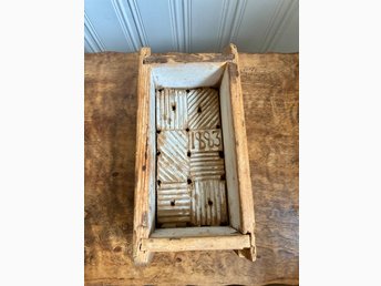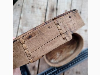 Antik ostform i trä allmoge daterad 1883 äldre allmogeföremål med patina