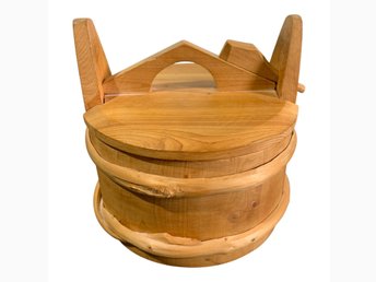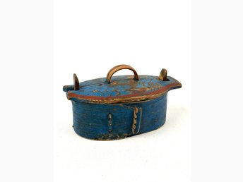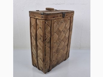 Spånkont med lock - Träkont - Flätat trä - Korg - Allmoge - 1900-tal - Antik