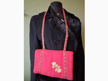 Röd muff med ficka i ull vintage retro folkdräkt folklore allmoge
