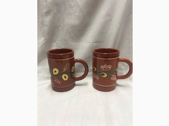 2 st ölsejdlar / dryckeskrus / höga muggar / keramik / allmoge