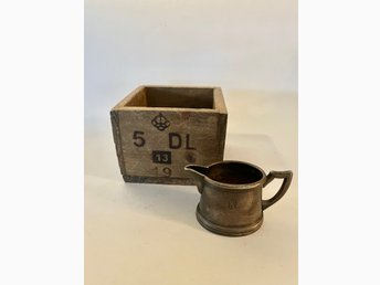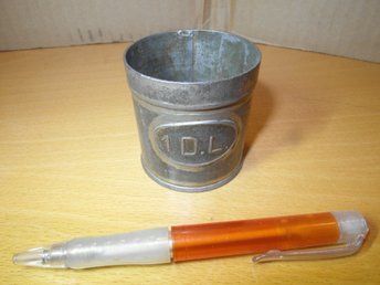 vintage mått i metall, märkt "1 D.L.", kronstämpel på 4 ställen, tillverkad 1929