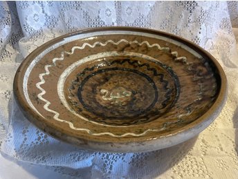 Allmoge lerfat - antikt lergods fat 1800 -tal. Anjou Krukmakeri Skene.